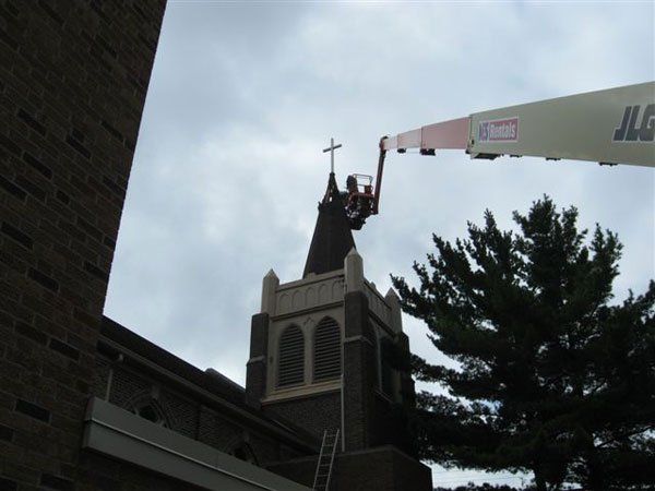 In June 2010, our company was approached by Kent Power project manager, Eric Stewart. Eric advised us that he needed our assistance in modifying a 100 year old church steeple. The challenge was that the steeple was located about 90' above ground level, on top of a church tower.